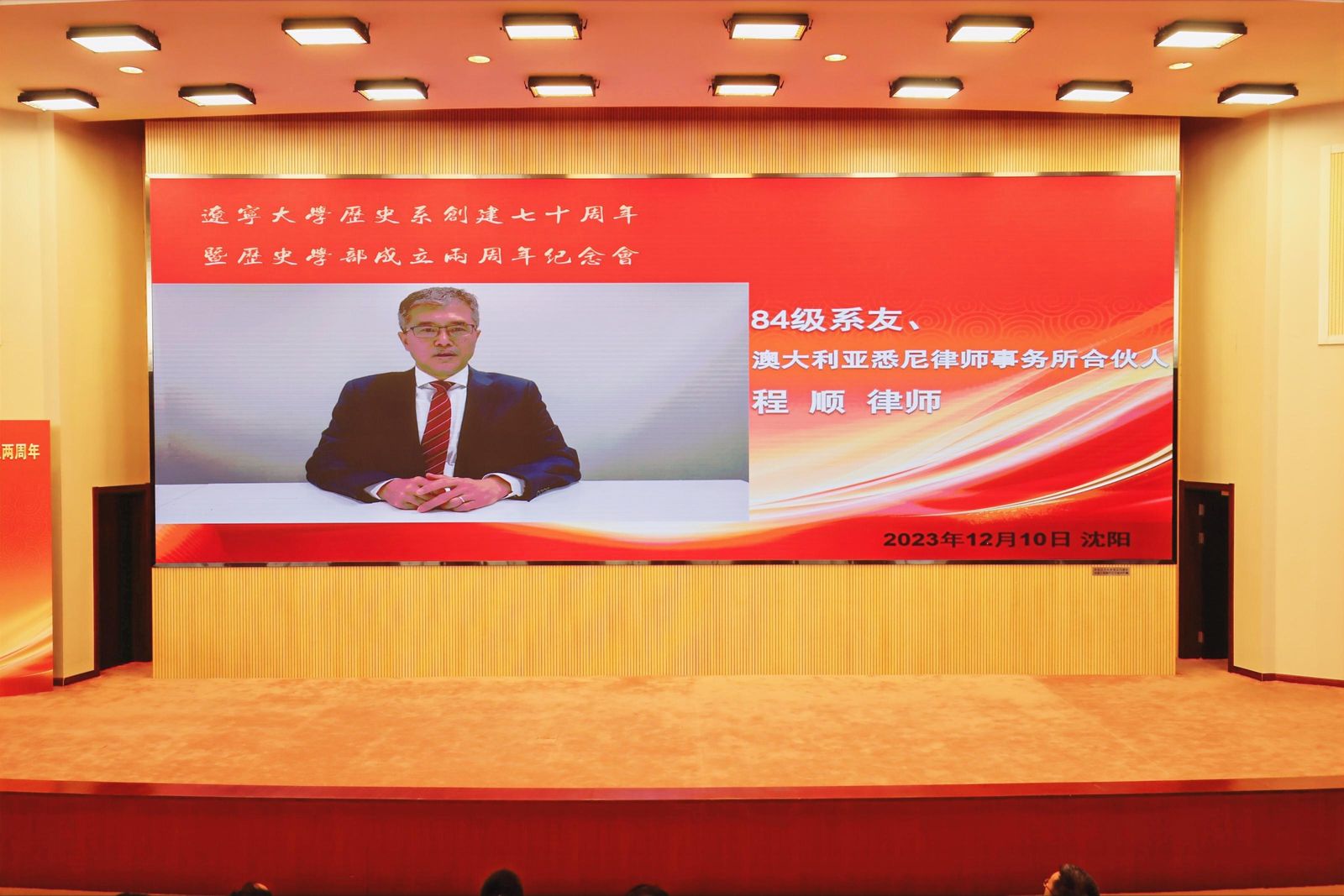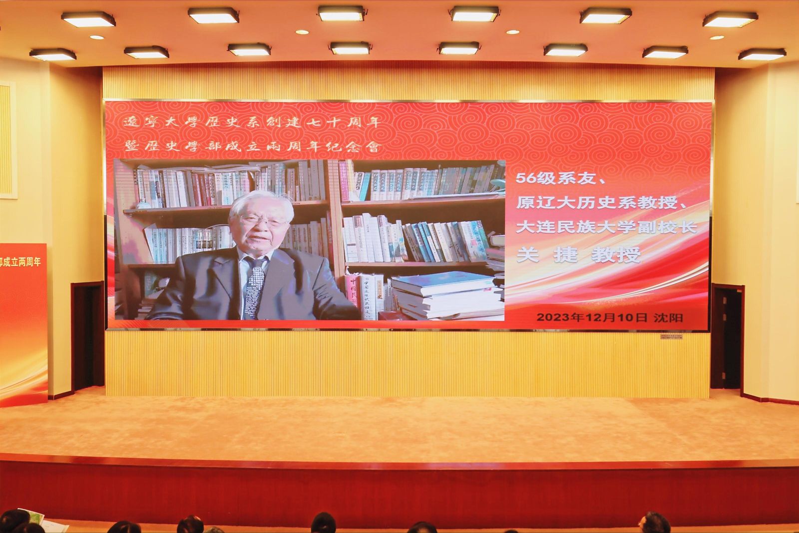 系友代表56级系友、原辽大历史系教授、大连民族大学副校长关捷,77级系友、原辽大历史系教授、温州大学教授王海晨,84级系友、澳大利亚悉尼律师事务所合伙人程顺分别致辞。
